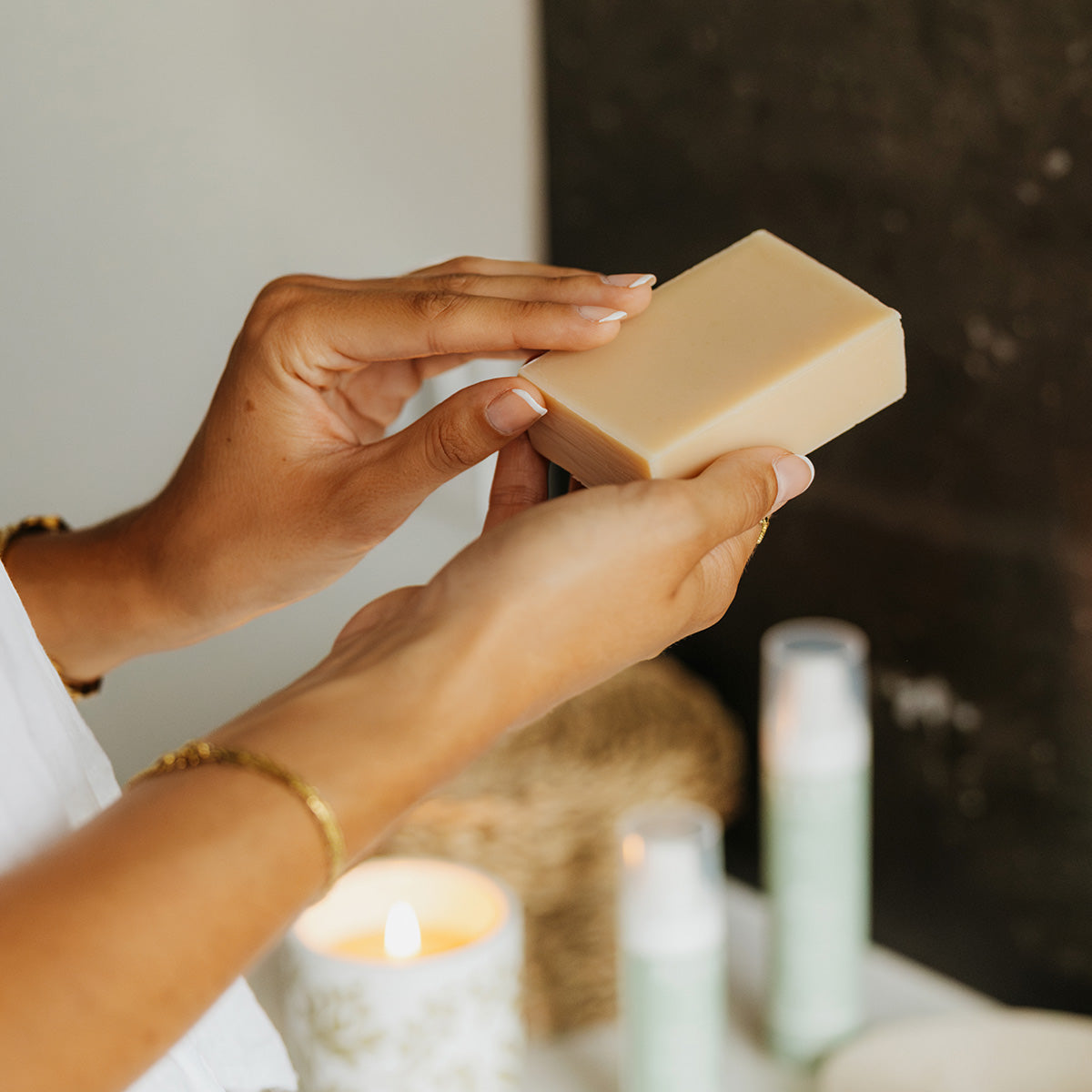 - Glycérine naturelle : créée lors de la fabrication à froid, elle reste dans le savon pour aider votre peau à garder son hydratation.