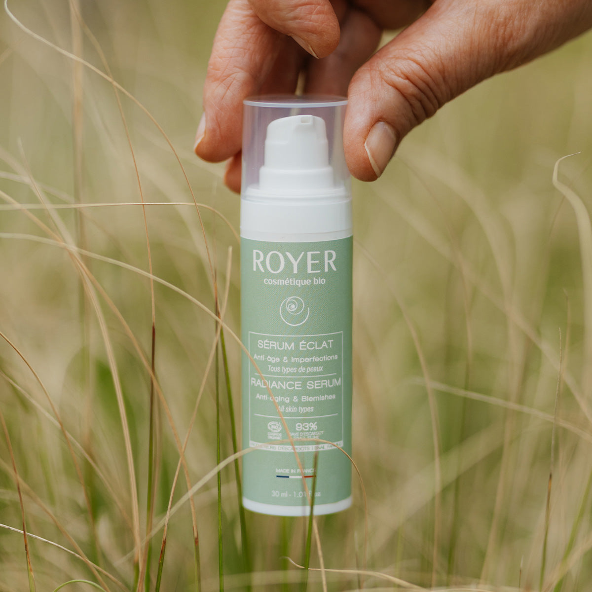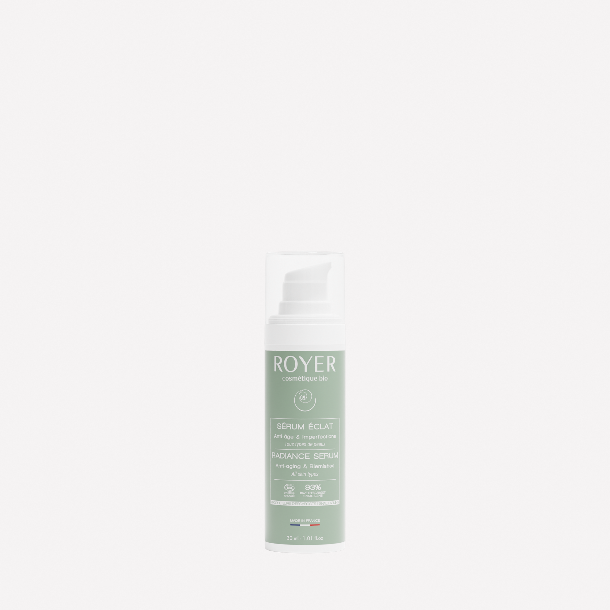 Chez Royer, nous récoltons une bave d’escargot pure, non diluée et naturellement riche en actifs essentiels. C’est ce qui nous distingue : contrairement aux extraits de bave utilisés dans la majorité des produits du marché, notre bave conserve 100 % de ses composants naturels. Cette pureté nous permet d’en intégrer de grandes quantités dans nos soins afin d’offrir à la peau une efficacité optimale