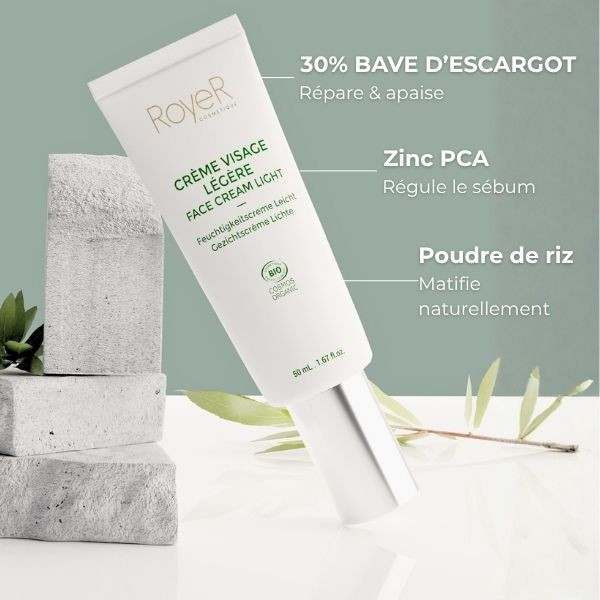 Crème visage matifiante légère à la bave d’escargot